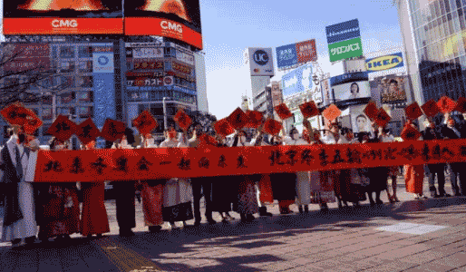 在东京涩谷十字路口的户外大屏幕上滚动播放,身着中国传统汉服和旗袍的文化使者出现在涩谷街头,宣传北京冬奥会当地人。中日书法家还写下了“为冬奥加油”、“携手未来”等字样,并邀请人们签名为北京冬奥会加油。中国书法家金欧说,作为一名海外华人,在涩谷通过书法为祖国加油是一件非常激动的事情。他相信北京冬奥会会让世界更和平、更美好。日本书法家和川翻水表示,能以这样的方式为北京冬奥会加油助威是莫大的荣幸。他希望大家怀着美好的愿望,跨越未来,预祝北京冬奥会取得圆满成功。