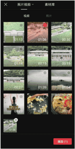 02 打开手机素材库文件夹,选择需要导入、裁剪的视频素材;点击下方的“添加”按钮,如图3-17所示。