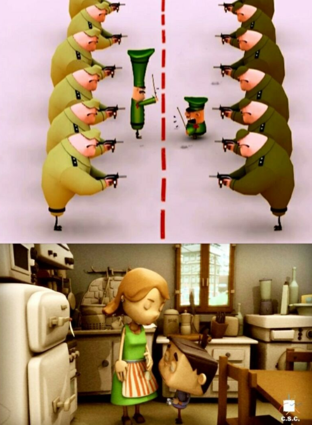 立体造型制作技术特点的借鉴木偶分段连接,泥偶塑造成形,纸偶以粘贴、拼凑为主,皮影由铁丝和细绳固定关节....出于材料的不同,立体造型具体制作的形式也大有区别,当然也成为不同材料动画的特点之一。这些特点也同样往往成为很多三维动画中造型设计的灵感起源,如在片中的角色既没有强调剪纸动画的概也没有强调剪纸“有限”表演的意图,相反却能灵活机动。但在造型的结构组成上就有意借助“木块”的造型概念,形成意象型的“材料”造型,还可以形成其他传统形式的视觉效果,如水墨、皮影这样的形式已经被广泛采用,而以木偶,或其他材质动画形式的作品就更是屡见不鲜了。如图所示为三维动画短片、剪纸动画。