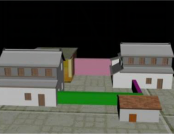 (2)建立摄像机。选择“创建"→"摄像机”-→"目标”,在顶视图中创建一台目标摄像机,。激活透视图,在键盘上按C键将透视图切换为摄像机视图,渲染后的效果如图所示。