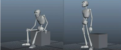 因为通过计算机会计算出一个预设的答案,这经常会影响动画师们对真实情形的思考。从坐着到站起来这一动作过程的真实自然的状态应该是这样的。对比一下上下两组动作有什么区别?读者可以自己从坐下状态起身看看,到底是哪种?