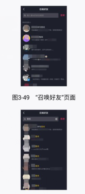 运营者在进行设置时,首先应点击“@好友”,进入“召唤好友”页面,此时该页面会显示已经关注了的抖音用户运营者可从中选择一个“@好友"对象。运 营者还可以在"召唤好友”页面上方的搜索框中输入关键词,点击"搜索”按钮,就可显示更多的与关键词相关的抖音用户,如下图所示。