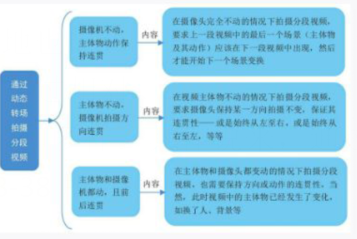 既然有“静态转场”,那么相对地也应该有“动态转场”,确实如此。只不过相对于静态转场而言,动态转场复杂和多样。具体说来,通过动态转场拍摄分段视频,主要有三种情况,如下图所示。