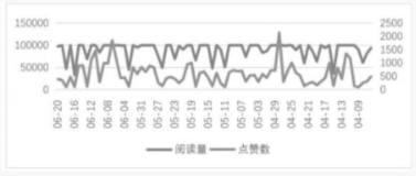 ●选择该公众号最近的100篇文章并观察分析阅读、点赞趋势没有明显异常(如图所示)。