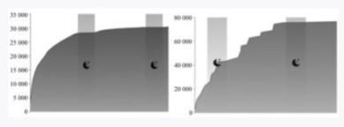 阅读数据总量即累计阅读量图。正常的阅读量呈现平缓的上升趋势(左图所示);非正常的阅读量则可能出现很多锯齿形(如图右图所示)。