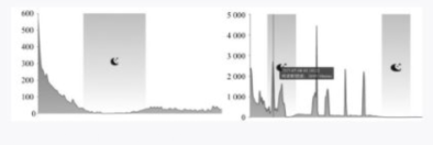 数据增量指每10分钟的阅读数,数据趋势图一般会遵循前高后低原则。如图所示,左图是正常的阅读量走势;右图则增量走势极其不稳定,出现了很多个波峰,某个阅读高峰居然出现在凌晨1点多,不符合该公众号的阅读规律,该号明显是刷量号。