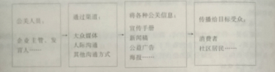 5W模式是由政治学家拉斯韦尔(Lasswell) 提出来的: 5W即who says what in which channel to whom with what effects,也就是说是谁一说了什么一通过什么渠道一传播给谁一产生了什么效果。按照这一理论。公共关系可以被阐述为这样一个流程(见图)