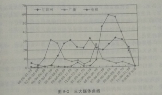 当越来越多的人习惯于用E-mail、MSN联系客户,用Google、百度搜索信息,用新浪、搜狐看新闻的时候,互联网的登录曲线也开始显山露水。山字形的曲线凸显出三个黄金时段,双峰的广播收听曲线和单峰的电视收看曲线相形之下显得单薄。虽然互联网的登录峰值还不及电视的收看高峰,但唯有互联网是从早晨8点一直到深夜12点始终抓住人们眼球的媒体,每个时点的到达率都维持在15%以上。