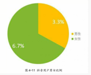 根据相关数据,抖音上男性用户的比例为33%,女性用户的比例为67%,这个数据说明,抖音上的女性用户远远多余男性用户,而女性的消费力是强于男性的,这也是抖音带货能力强的原因。