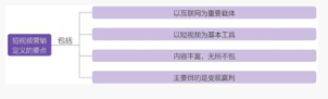 短视频营销已经不是一个陌生的名词,很多从事营销业务和身处于营销市场中的人员对这一名词耳熟能详,那么,短视频营销的真正含义到底是什么呢?笔者将其定义的要点总结了一下,如图1-6所示。