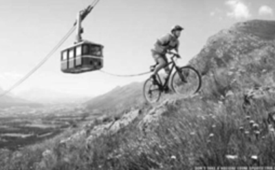 如上图所示的作品为十项全能体育用品的宣传广告,广告中骑着单车的男子将身后的缆车带动着前行,这样一种极为夸张的广告创意,让观者在感受一种趣味性的同时,也对广告对象(体育用品)的功能有了一定的了解。
