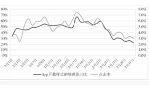 图4-2 App下载样式的展现量占比与点击率的趋势