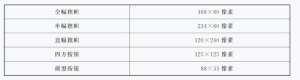 旗帜广告有多种尺寸,常见的有468×60像素、234×60像素等。具体像素见表1-1。