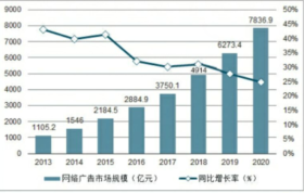 传统媒体广告的发布成本动辄上百万元,而随着新媒体的兴起,企业的广告发布成本逐步降低,并不断将品牌推广预算转移到新媒体上。图2-1所示为2013~2020年中国网络广告市场规模,结果显示,2013~2020年网络广告市场规模一直在不断增长,这说明很多企业已经将广告投放渠道转为新媒体方向。