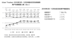 据上图显示,2010年3月~12月,微博用户数量10个月内增加近2倍,同比于2009年微博用户规模增长率达到435.4%,应该说,微博的瞬间走红,的确出乎意料但又在情理之中。