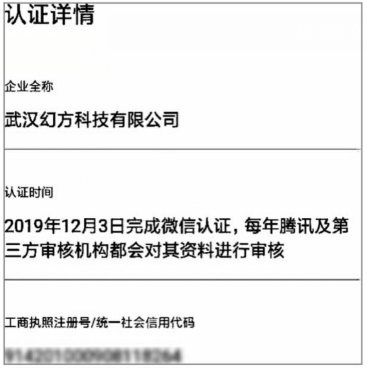 视频号账号在通过“企业和机构认证”后,系统会生成一个“认证详情”界面,具体内容包括“企业全称”“认证时间”及“工商执照注册号/统一社会信用代码”(图2.1-10)。