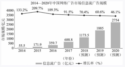 图1-4 援引自艾瑞咨询的信息流广告规模数据(2017年)