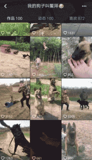 又如,一个名为“我的狗子叫鳌拜”的抖音号,其内容在垂直化方面就做得很好。相较于其他拍各种萌宠的抖音号作者,这一抖音号播主就只拍狗,如图2-32所示,实现了初步垂直化。当然,其差异化也就有了。然后这一抖音号播主又积极进行狗的技能和视频内容开发,拍摄各种难度较高的短视频内容,如图2-33所示,从而使得短视频浏览量迅速攀升。