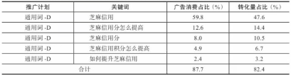 表4-7 通用词-D计划下TOP 5关键词的广告消费和转化量