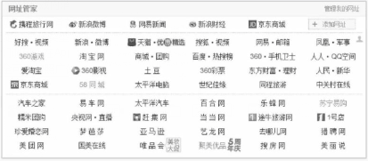 (3)固定位导航。这主要包括网址导航站的位置入口(如图1-12所示)、应用分发平台的推荐位置等付费推广位置。一般来说,这种产品的销售都采用按时间付费的固定位模式,而不是动态的竞价决策模式。这是因为广告主除了引流以外,往往更加关注这些入口位置的橱窗效应。这种广告的销售和运营模式与按天购买的合约广告相同。