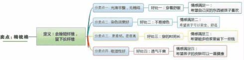 例如,假设某企业的产品为婴幼儿服装,文案工作者希望文案能够体现“精梳棉”这一卖点,其思维导图如图2-19所示。