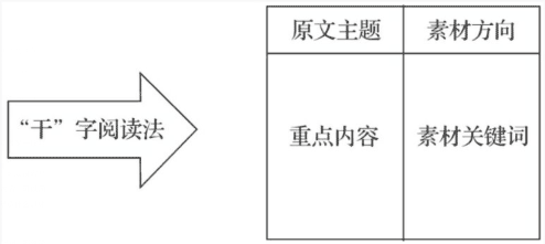 读了,但是记不住,更形不成任何“产出”,这样的阅读是没有效率的,对于积累素材也毫无帮助。在这里,我给大家推荐一种阅读时做笔记的方法——“干”字阅读法,这种方法可以帮助我们养成良好的阅读、思考习惯,带来的最直接效果就是:让我们的阅读形成“产出”,快速有效地积累大量素材。