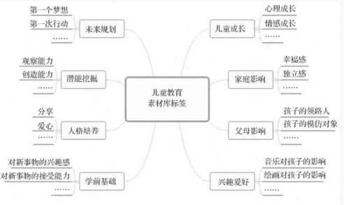 如果这个儿童教育机构的课程包含音乐、绘画、手工等多种内容,那自然可以把每一个单项拿出来,作为一个具体的塑造点,也就是一个收集素材时的二级标签。