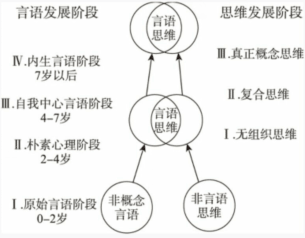 维果茨基分别从言语和思维的发展特点上,将儿童的发展阶段划分为言语发展阶段和思维发展阶段(见图1-3)。