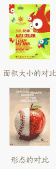 形态的对比方式。通过形态比例的对比赋予版面变化感。例如,通过几何图形之间的形态对比、不同事物的形态对比、不同的角度和位置等属性的形态对比等,以增强版面的趣味性。