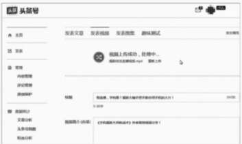 最后,稍等片刻,界面提示视频上传成功,如图4-35所示,用户即可发表上传的视频。