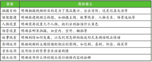 (2)视频脚本的构成要素