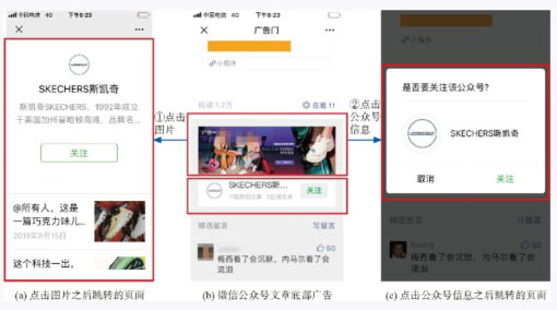 在图 5-14a 中,公众号的名字、图标、介绍以及前两篇文章的标题是用户第一眼能看到的内容,会对广告效果有非常大的影响。试想一下,如果只在广告图片上花工夫,但是忽略了公众号本身的介绍或者标题,那么广告效果一定会打折扣。在图 5-14c 中,用户看不到什么信息,只有公众号的图标和名字,如果这里能让用户看明白是什么样的公众号,关注的可能性会更高。