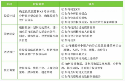 ③ 如何高效率地完成上述操作:个人的兴趣爱好、需求等都是差异化的,而投放执行的痛点在于如何高效率地完成媒体、人群、创意的策略组合。